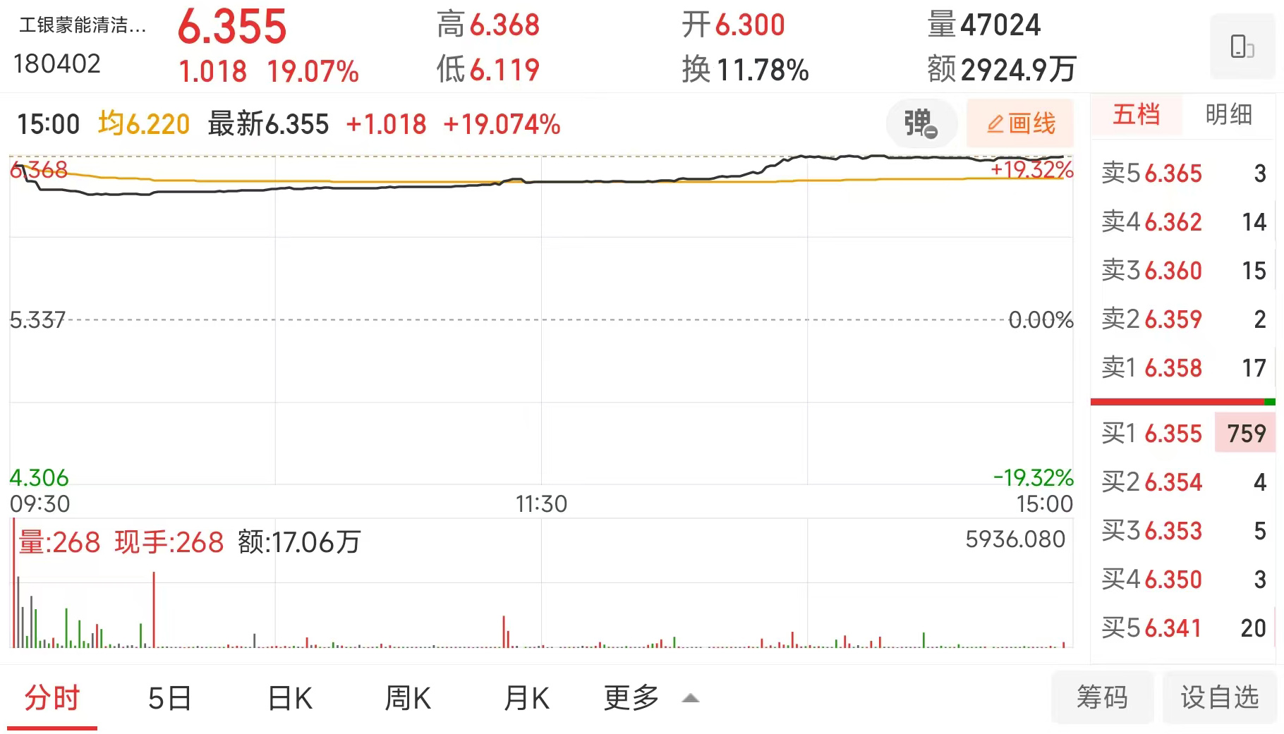 12月10日,内蒙古自治区首单基础设施公募REITs、全国首单国有企业陆上风电资产的基础设施REITs——工银蒙能清洁能源REIT(基金代码:180402)在深圳证券交易所成功上市。截至今天收盘,涨幅达19.07%。
